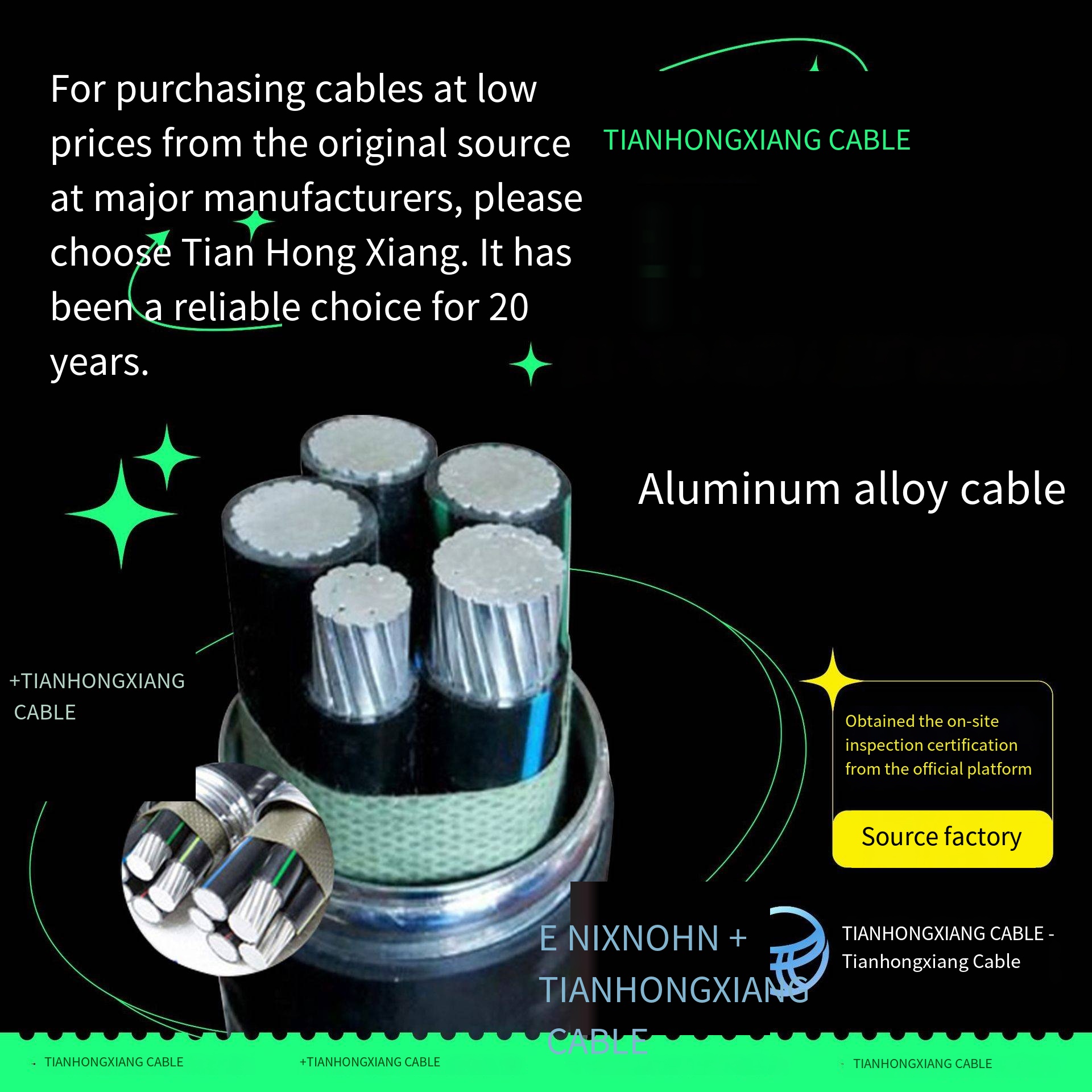 4×50 + 1×25: 4 cores 50mm² + 1 core 25mm² (ground wire), aluminum alloy conductor