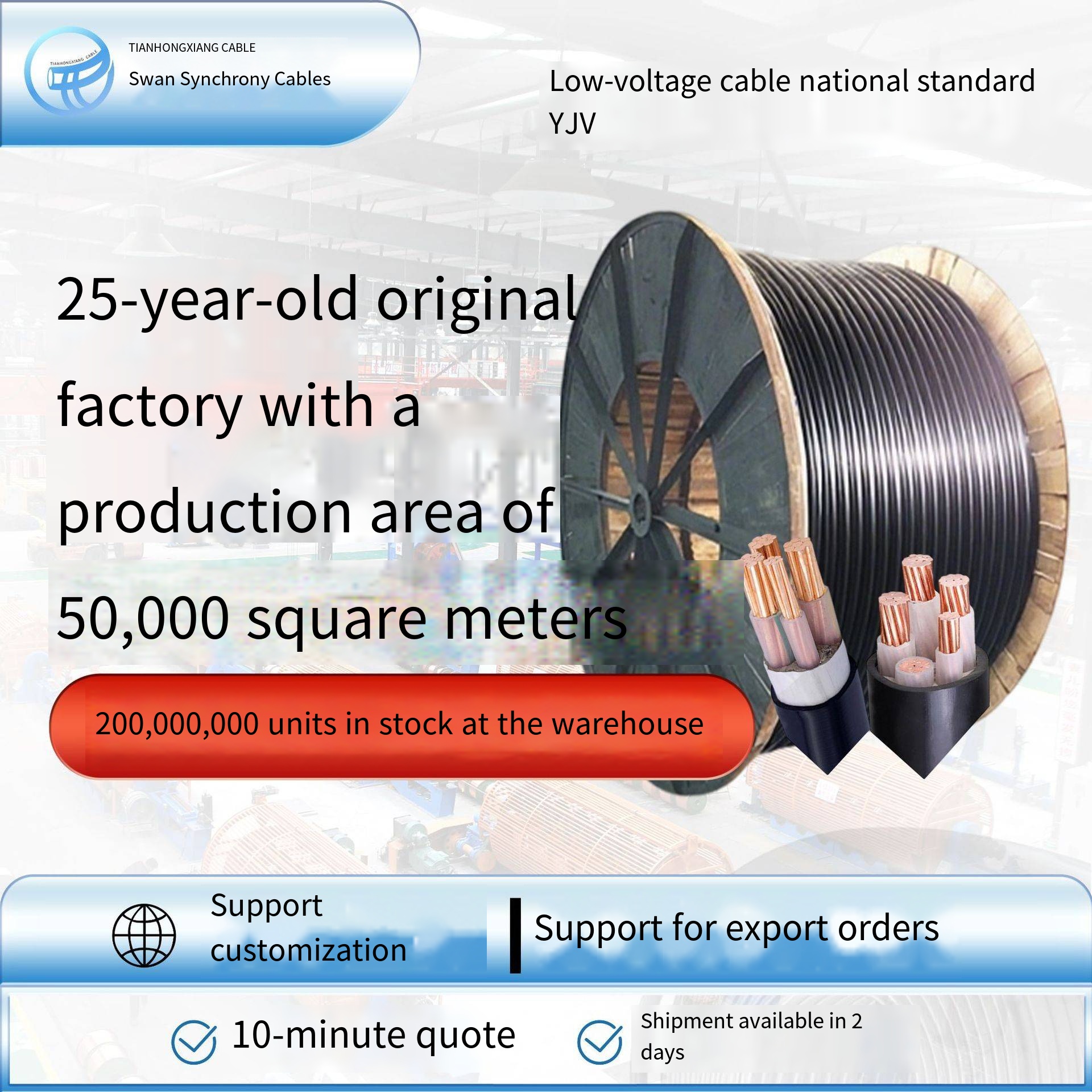 Multi-specification full coverage: 2/3/4/5/3+1/3+2 cores, full range of 10-50 square meters in stock, no need for splicing, can directly meet different buried power distribution requirements, no need for additional customization or waiting time