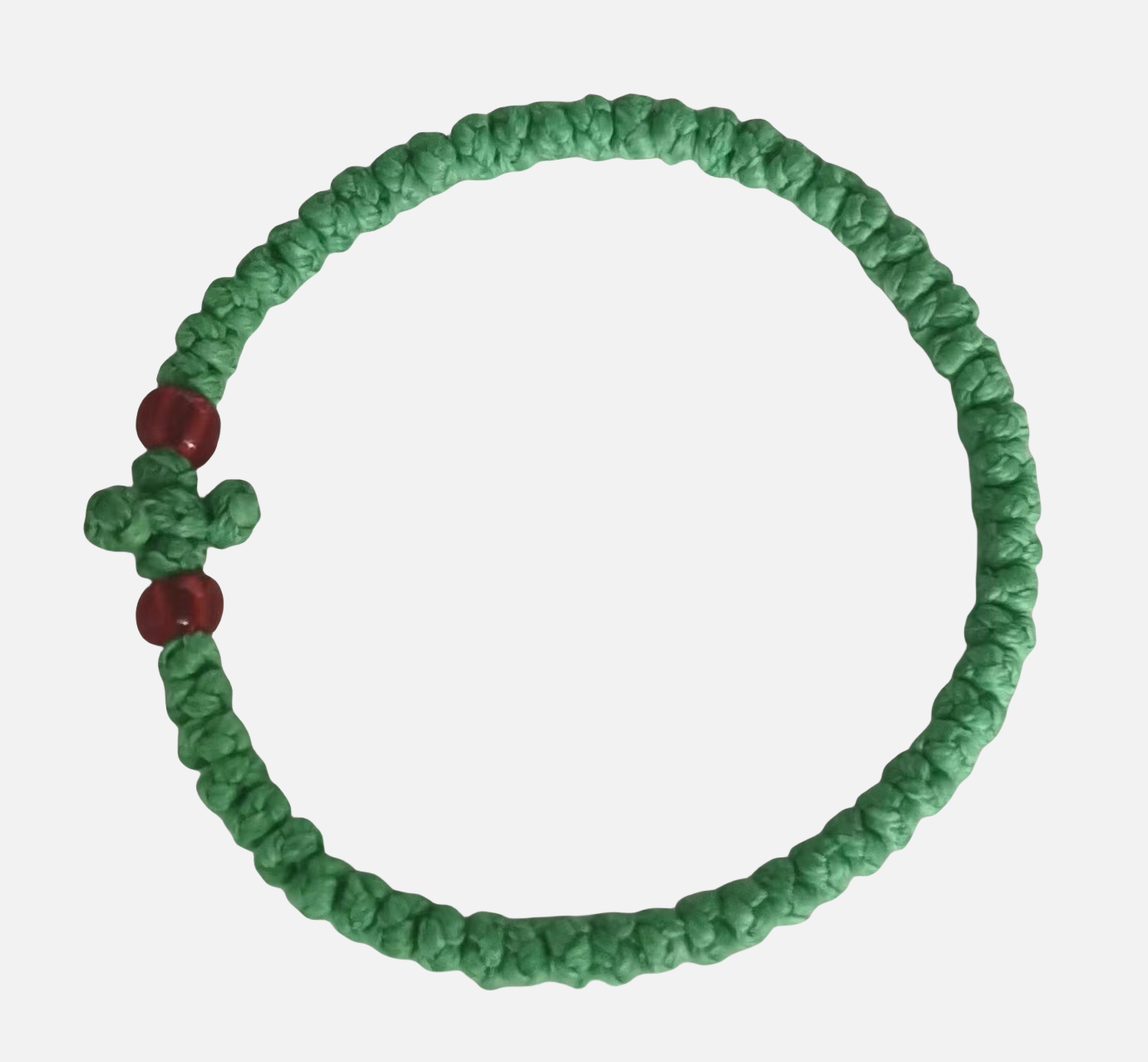 Factory Custom Orthodox Prayer Rope Bracelet for Kids, Brojanica, Komboskini, Chotki, Thin Waxed Thread Prayer Rope Bracelets Light atrovirens and Red beads