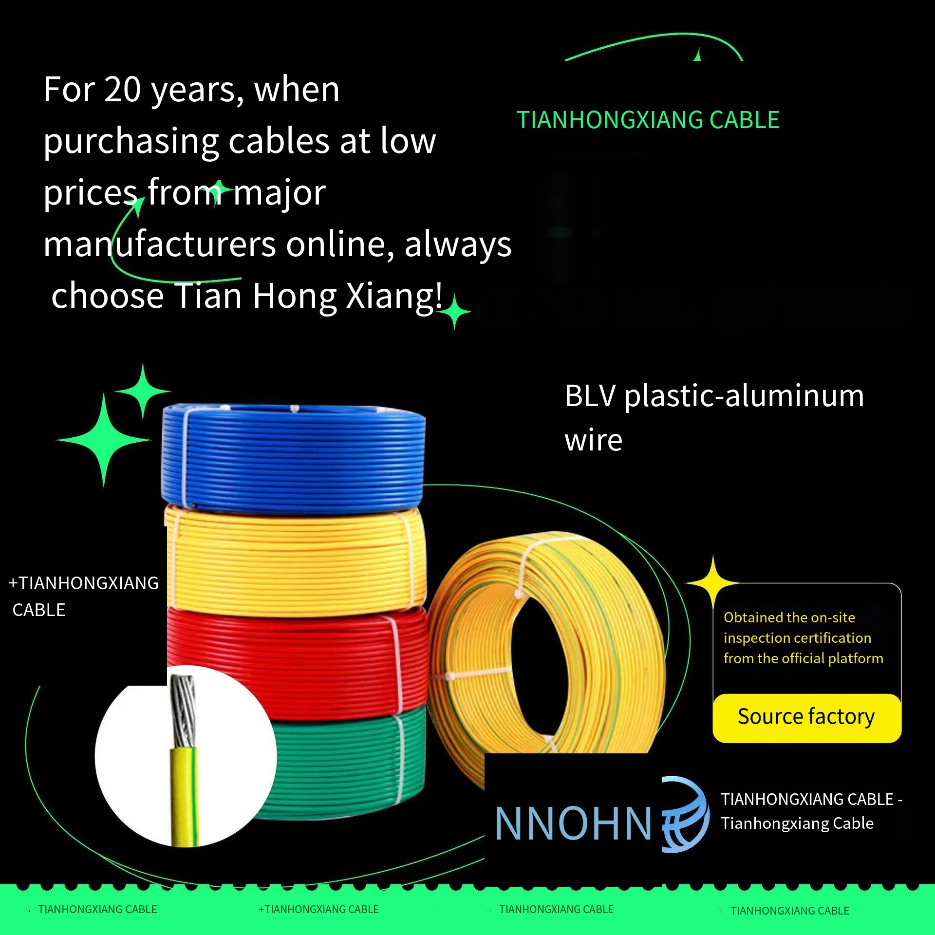 Tianhongxiang 50 mm² national standard flame-retardant BLV plastic aluminum wire is a dedicated wiring solution for large-residence and small commercial space decoration projects. With factory direct customization services, it fully meets the bulk procurement needs of decoration engineering teams, building material distributors, and property supporting projects, featuring stable performance, compliance with national standards, and high cost-effectiveness.