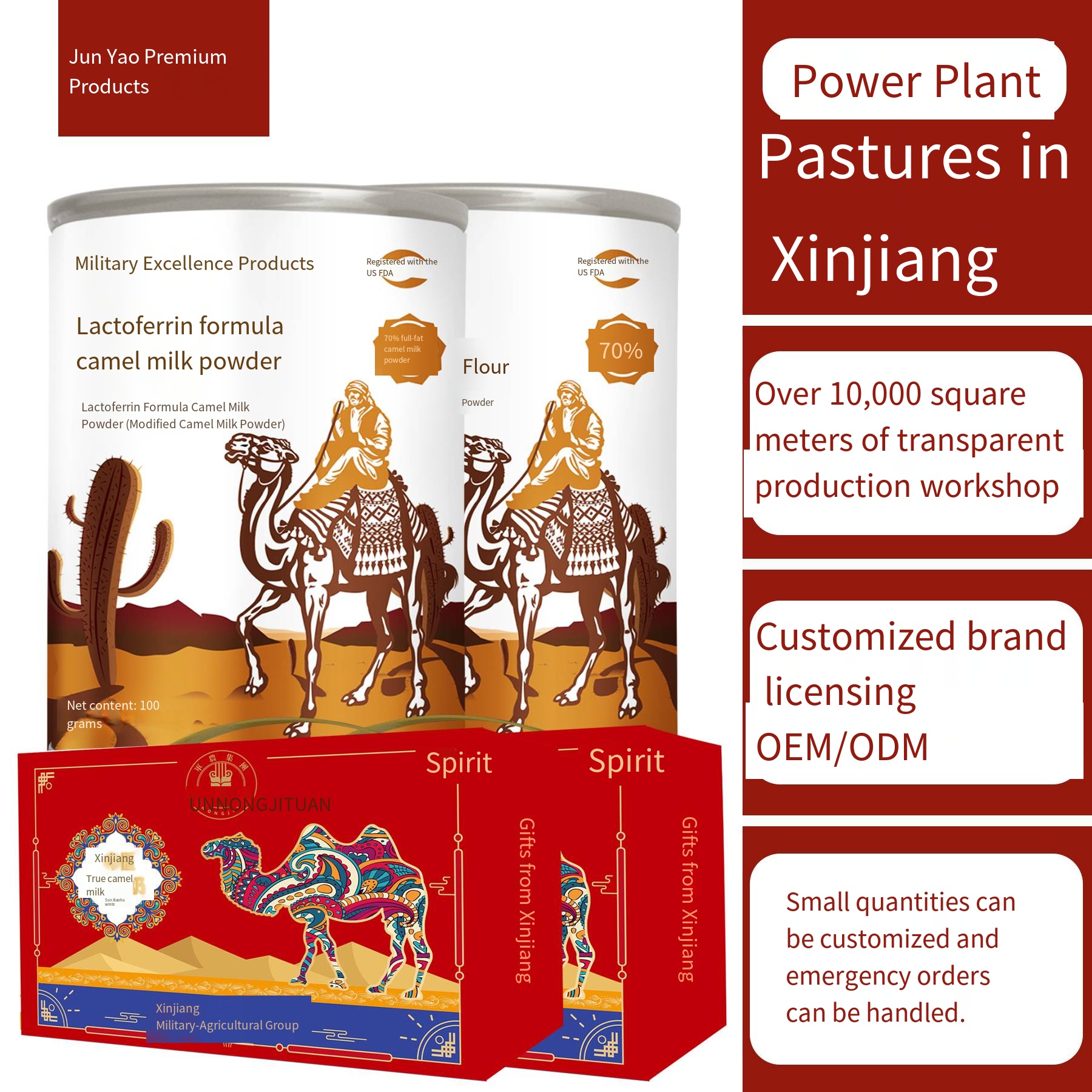 Junyao Premium Lactoferrin Camel Milk Powder for Teenagers, Student Milk Powder, Xinjiang Camel Milk Powder